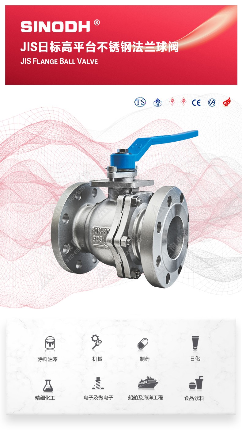 JIS日标高平台不锈钢法兰球阀,为开云官方站在线登入自主研发生产本产品设计制造标准符合J1 SB2071标准,该产品的球体(密封件)是浮动的,在介质压力作用下,球体能产生-定的位移并紧压在出口端的密封面上,保证出口端密封。适用于水、溶剂、酸和天然气等一般工业介质,也适用于工况恶劣的介质,如氧气、过氧化氢、乙烯等介质。